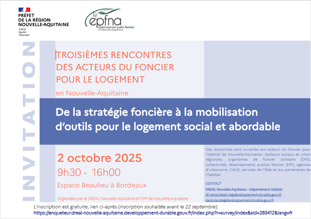 Les troisièmes rencontres des acteurs du foncier pour le logement en Nouvelle-Aquitaine - 2 octobre 2025