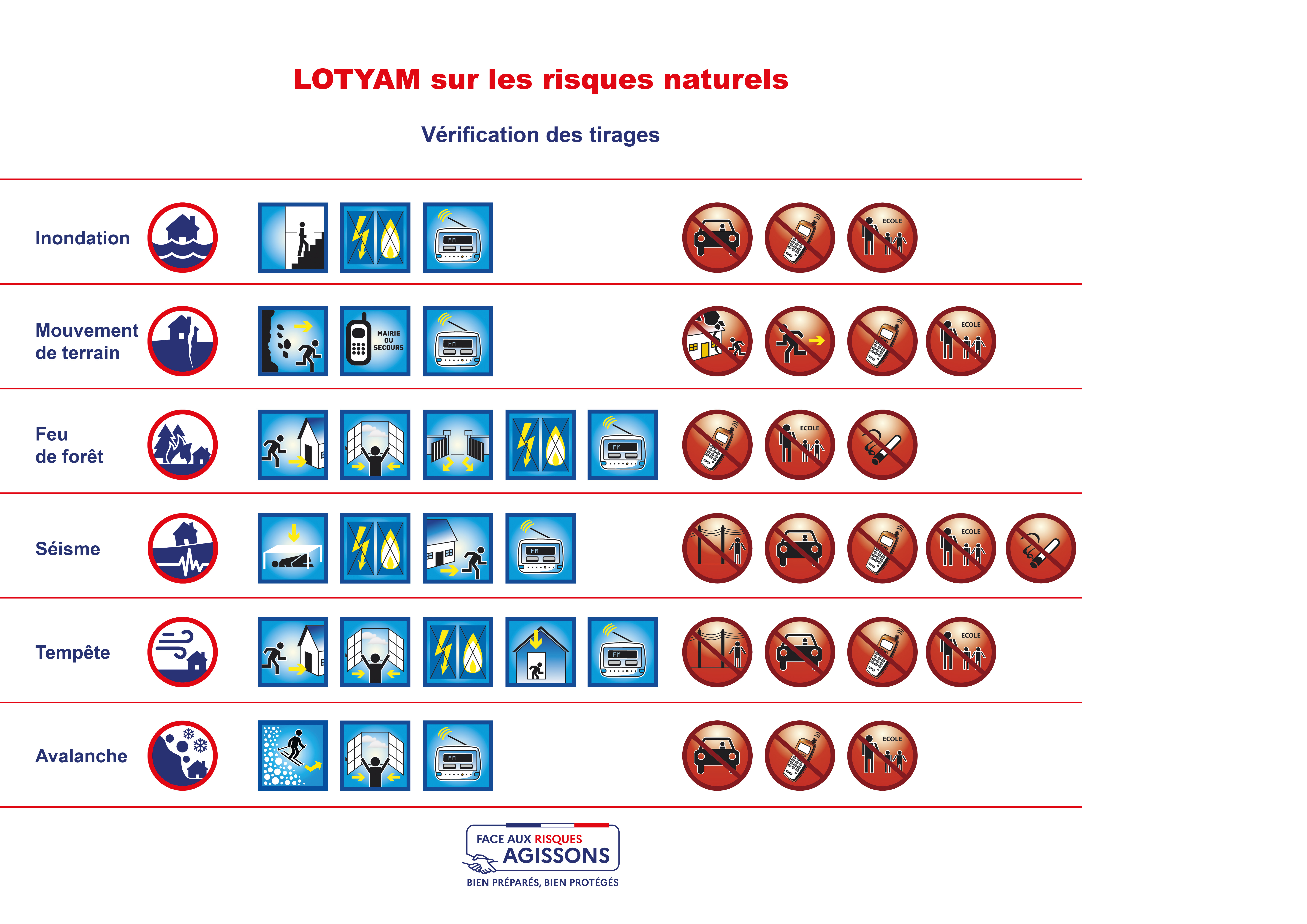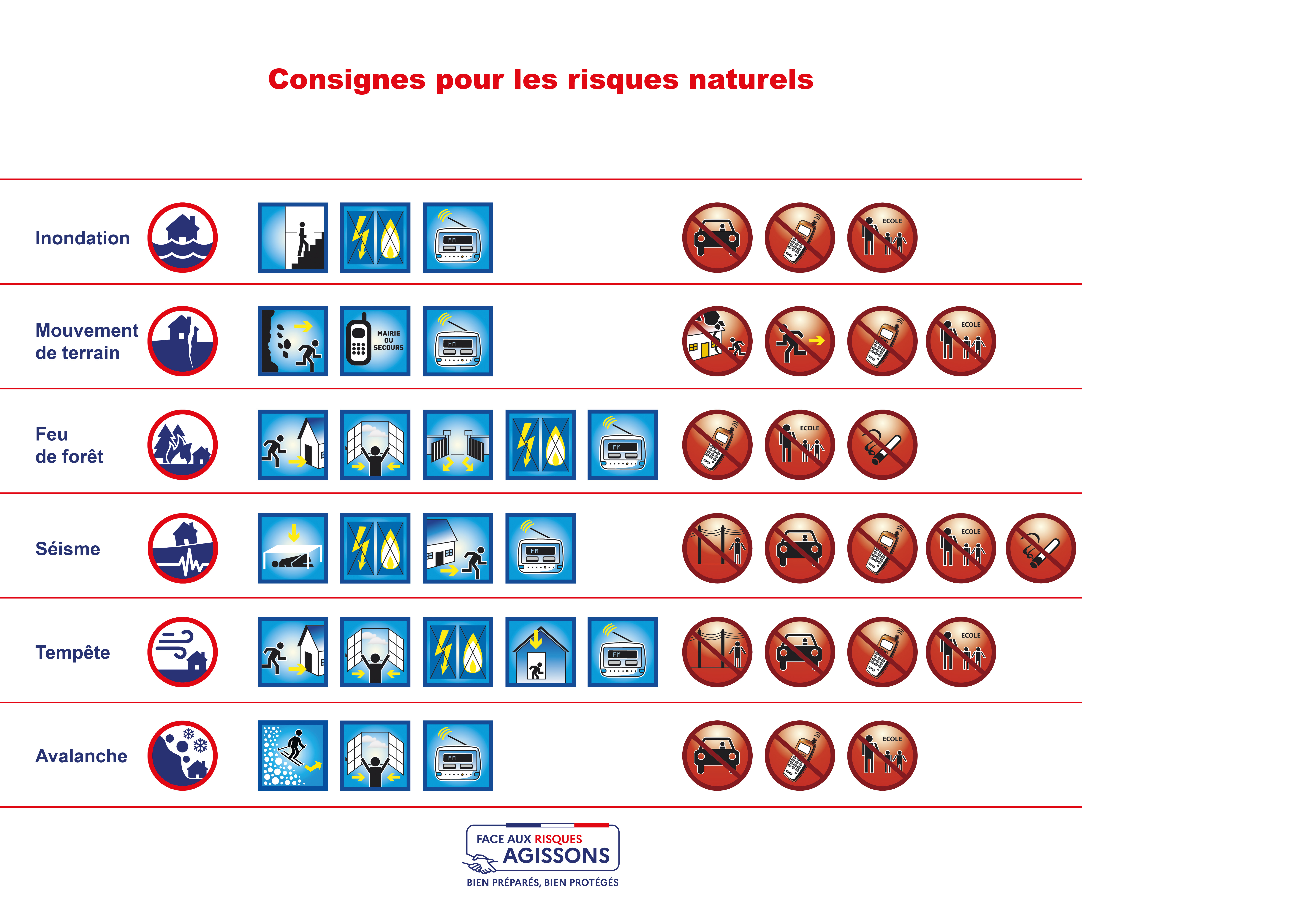 Thèmes abordés : inondation, séisme, feu de forêt, avalanche, mouvement de terrain, tempête.